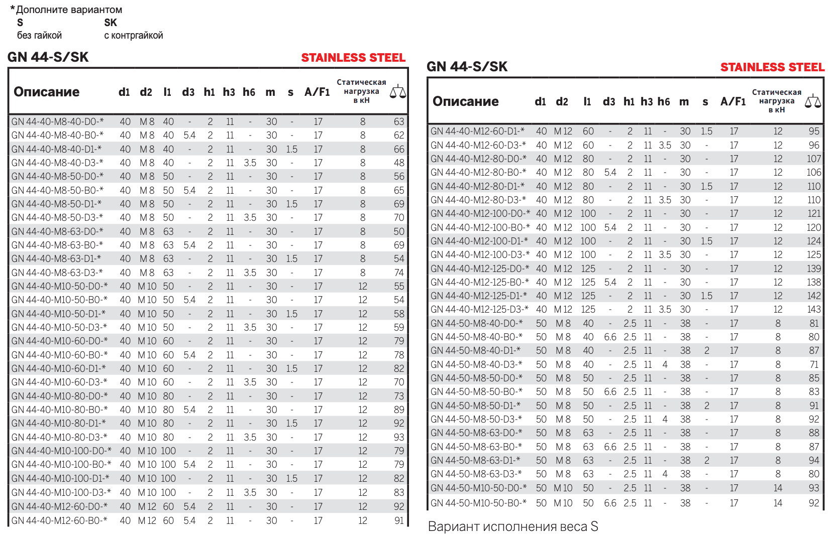 - Вариант исполнения SK: с гайкой, внешний шестигранник в основании