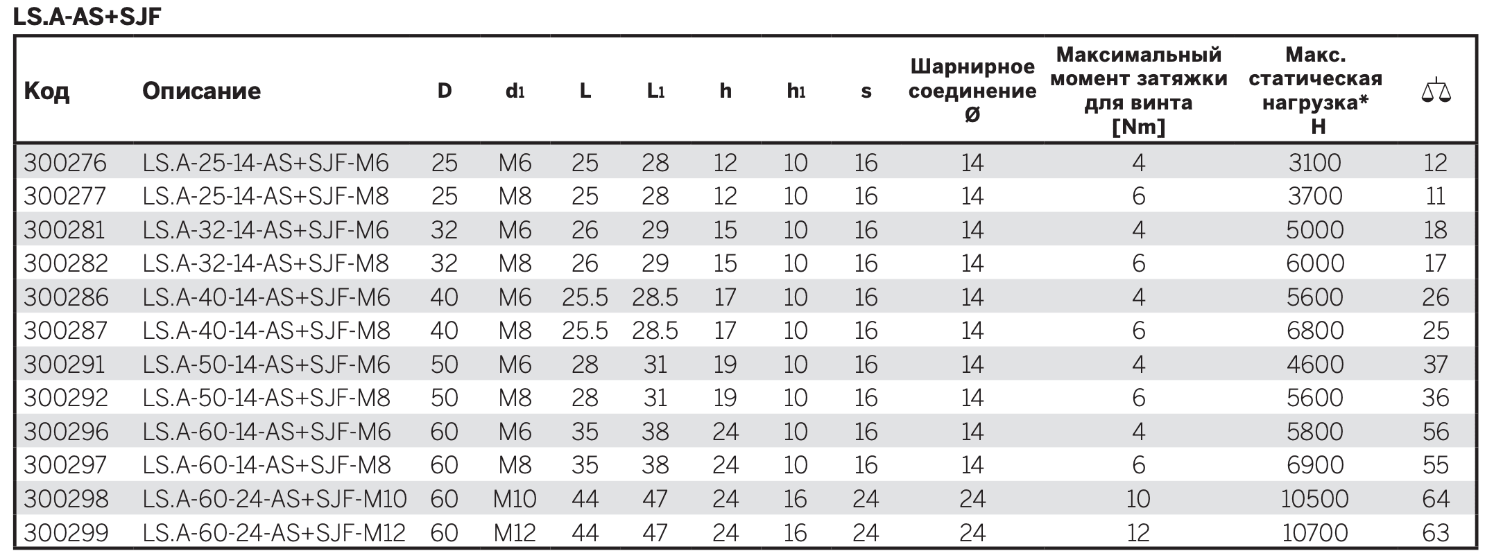 - LS.A-AS+SJF: с противоскользящим диском из бутадиеннитрильного каучука NBR, твердость по Шору А 70, поставляется прикрепленным к основанию.