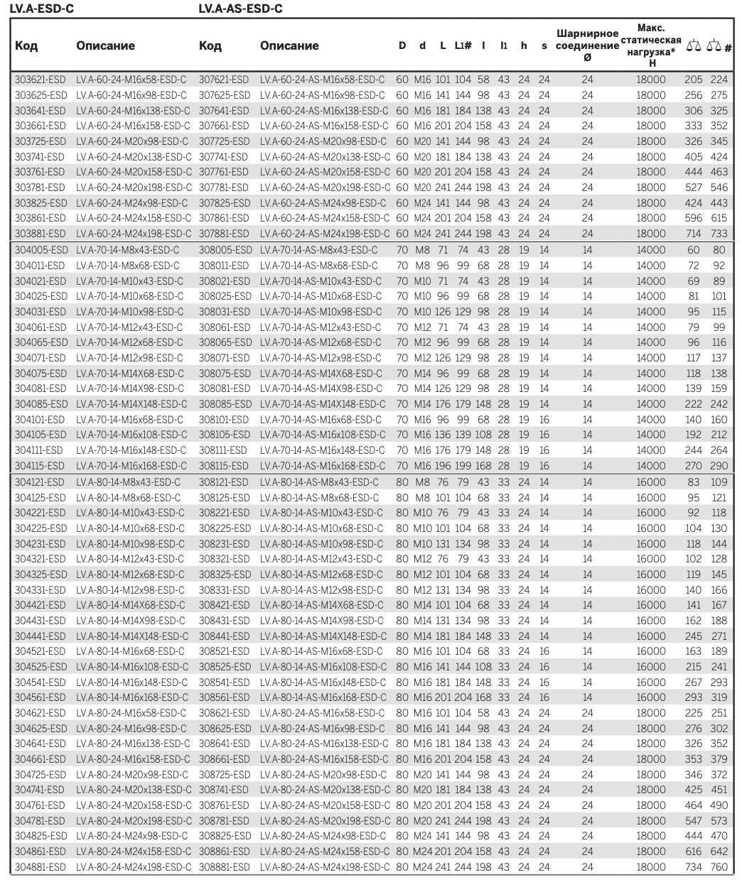 - LV.A-AS-ESD-C: с противоскользящим диском из бутадиен-нитрильного каучука, твёрдость по Шору А 70, поставляется в собранном виде.