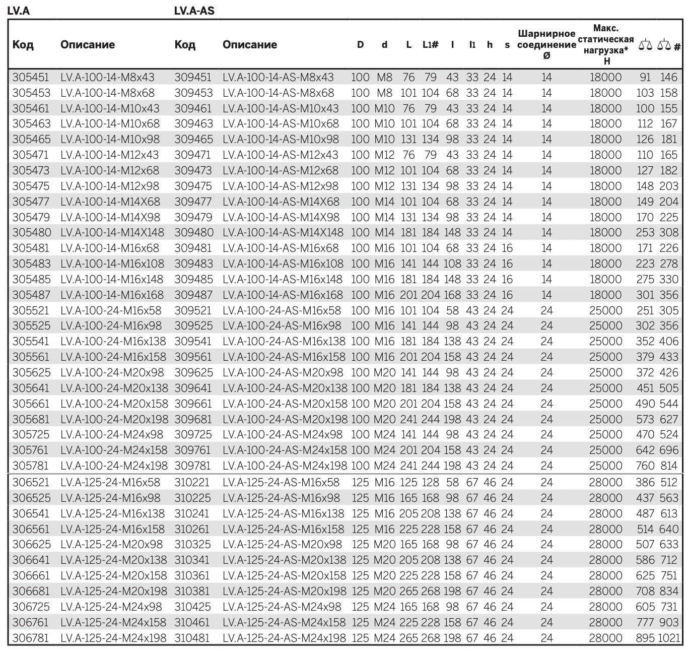 - LV.A-AS: с противоскользящим диском из бутадиеннитрильного каучука, твёрдость по Шору А 70, поставляется установленным на основании.
