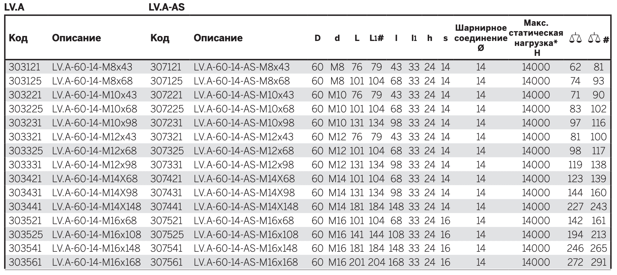 - LV.A-AS: с противоскользящим диском из бутадиеннитрильного каучука, твёрдость по Шору А 70, поставляется установленным на основании.