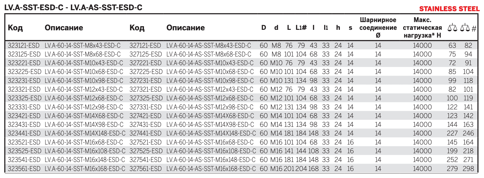 - LV.A-AS-SST-ESD-C: с противоскользящим диском из бутадиеннитрильного каучука, твёрдость по Шору А 70, поставляется в собранном виде.