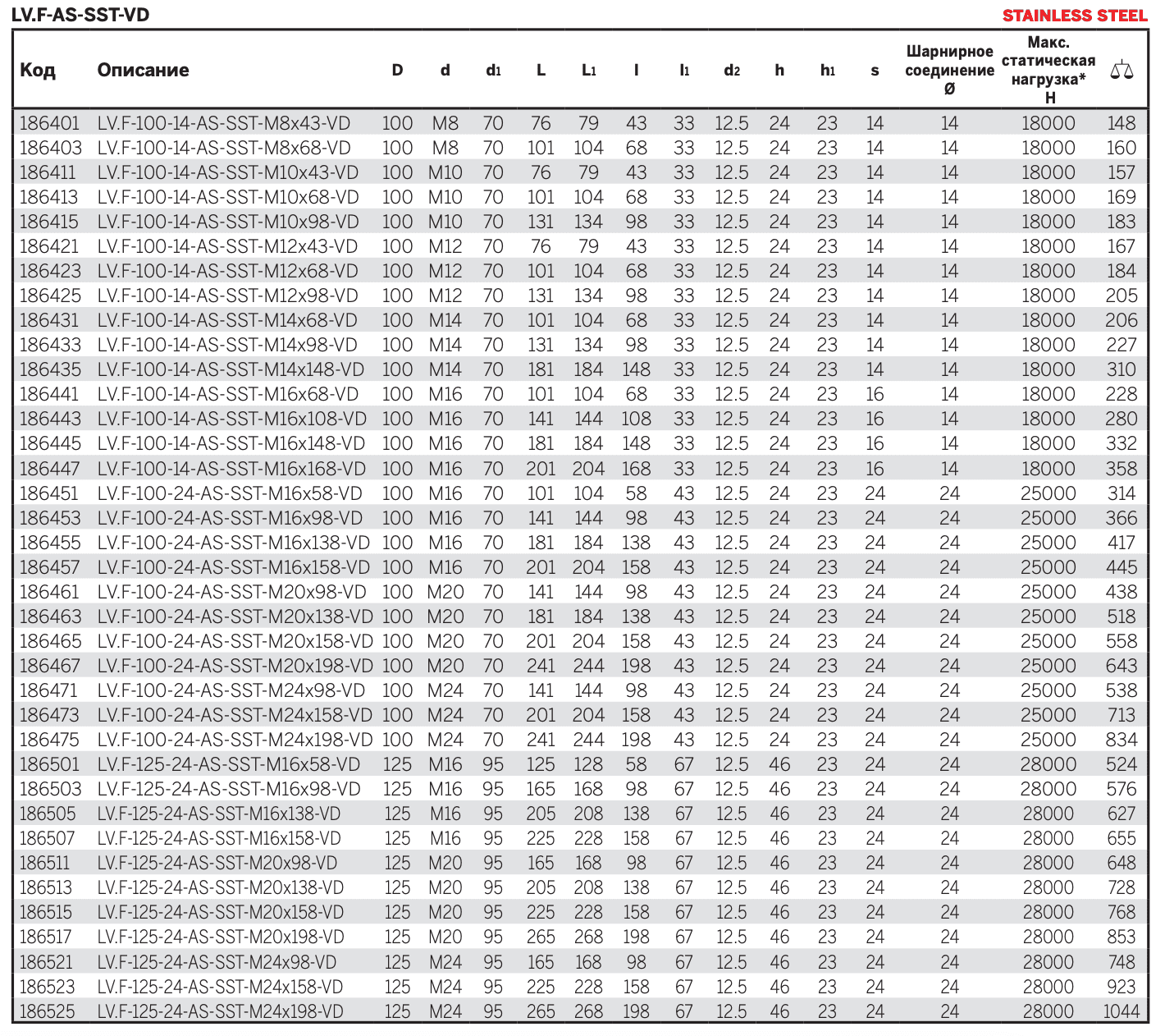 - LV.F-AS-SST-VD: с противоскользящим диском из бутадиеннитрильного каучука NBR, твердость по Шору А 70, поставляется прикрепленным к основанию.