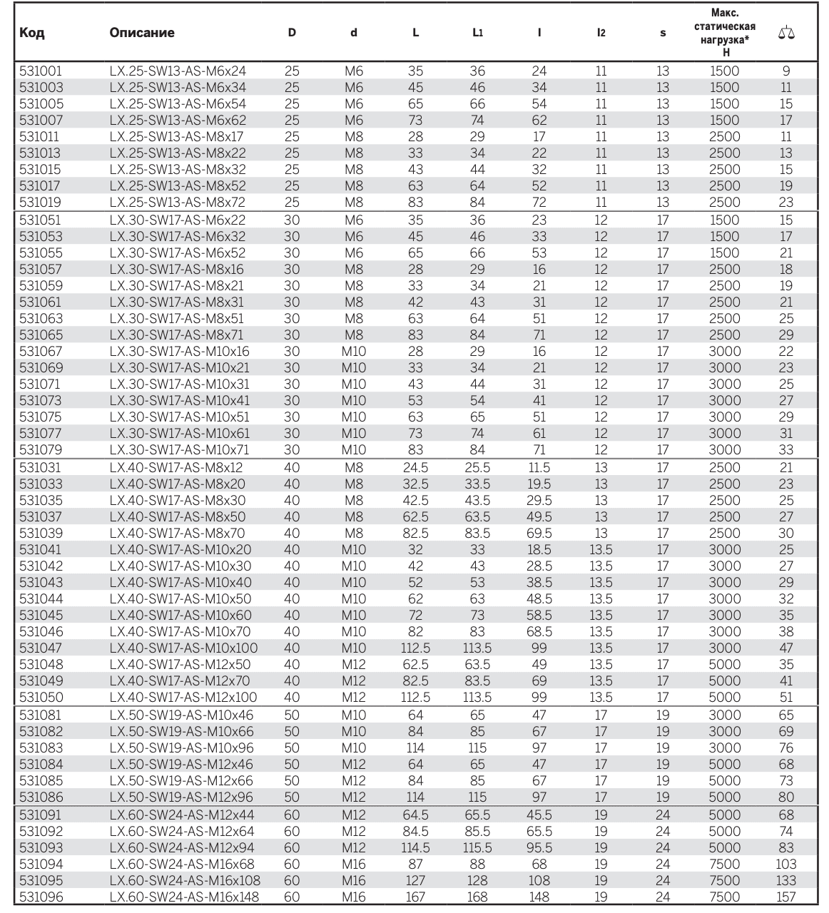- LX-AS: резьбовой винт из оцинкованной стали, основание с диском противоскольжения из стирол-бутадиенового каучука SBR, поставляемым в сборе с основанием.