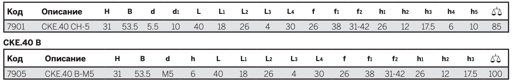 - CKE.40 CH: сквозные отверстия для винтов с цилиндрической головкой М5.