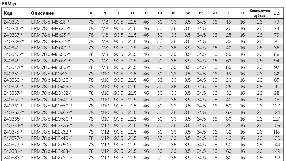 ERM-p: прижимной элемент из воронёной стали с резьбовым стержнем и фиксирующим винтом. Возвратная пружина из стали.