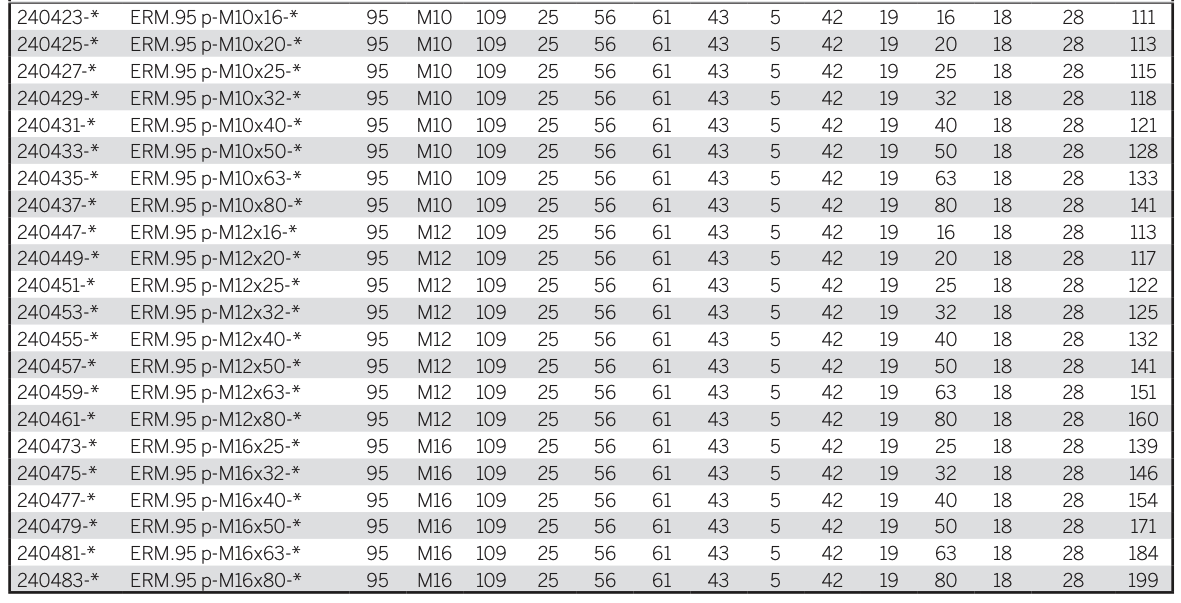 ERM-p: прижимной элемент из воронёной стали с резьбовым стержнем и фиксирующим винтом. Возвратная пружина из стали.