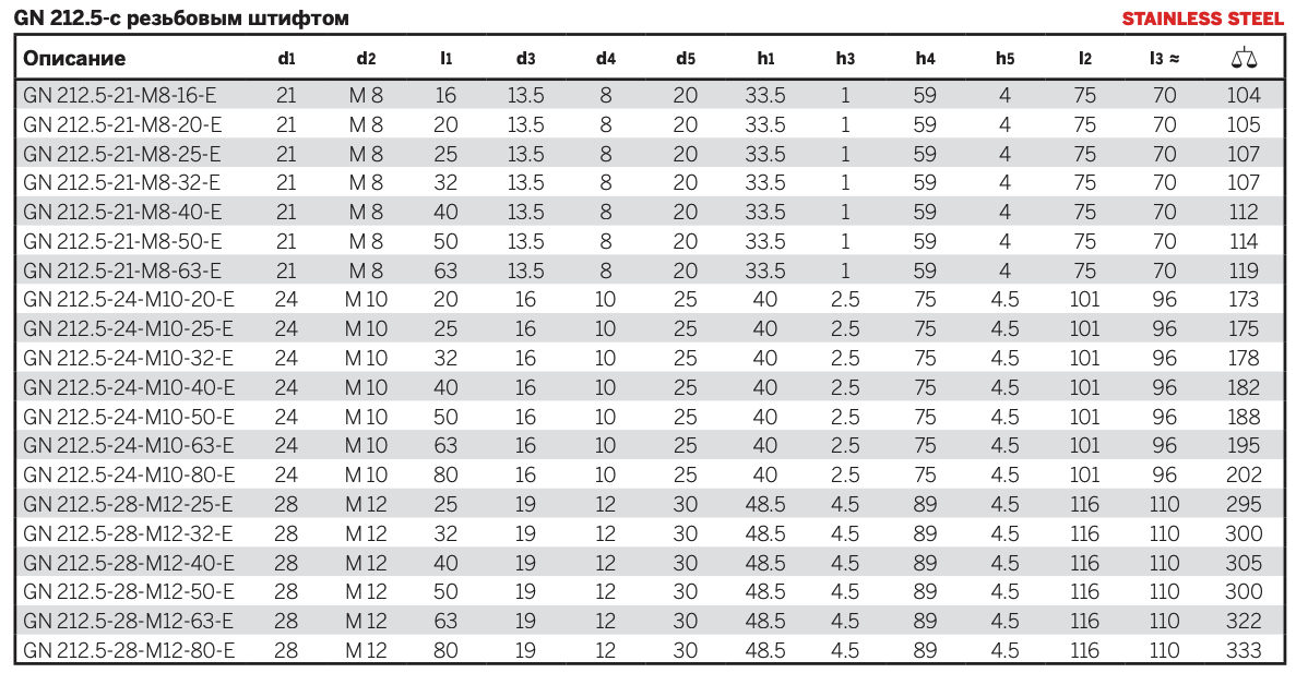 Группа изделий: Регулируемые ручки Тип сборки: Винт с резьбой Винт с резьбой, мм: M12 Длина, мм: 28