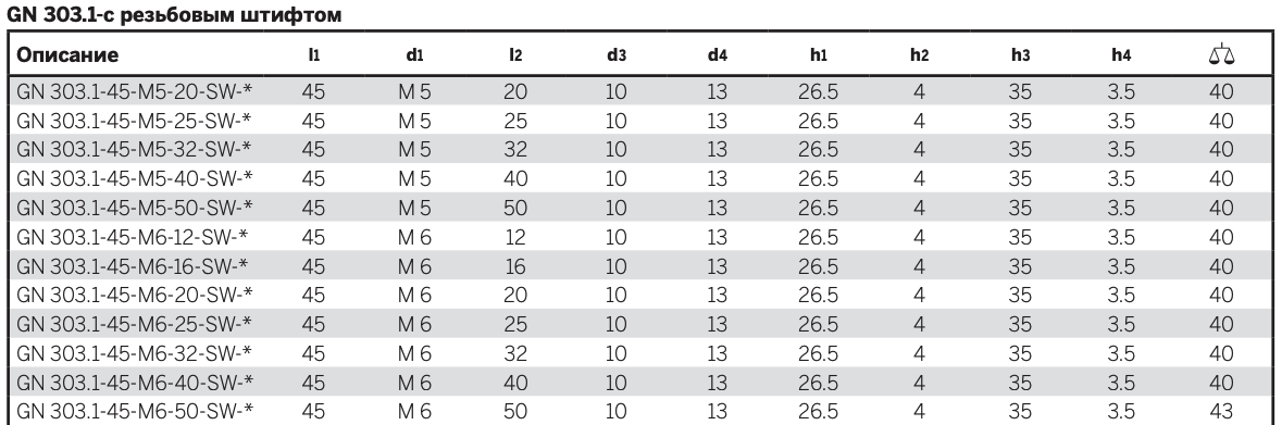 Группа изделий: Регулируемые ручки Тип сборки: Винт с резьбой Винт с резьбой, мм: M6 Длина, мм: 45
