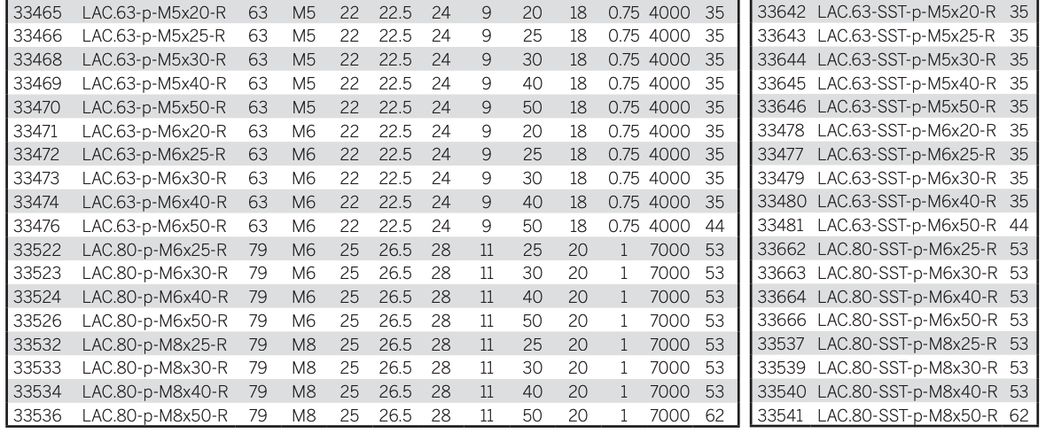 LAC-SST-p: позиционирование без регулируемой кольцевой гайки, вращающийся штифт с резьбовой шпилькой из нержавеющей стали AISI 303, со скошенным плоским концом, стандарт UNI 947: ISO 4753 Технические данные).