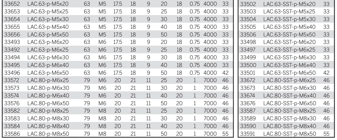 LAC-SST-p: позиционирование без регулируемой кольцевой гайки, вращающийся штифт с резьбовой шпилькой из нержавеющей стали AISI 303, со скошенным плоским концом, стандарт UNI 947: ISO 4753 Технические данные).
