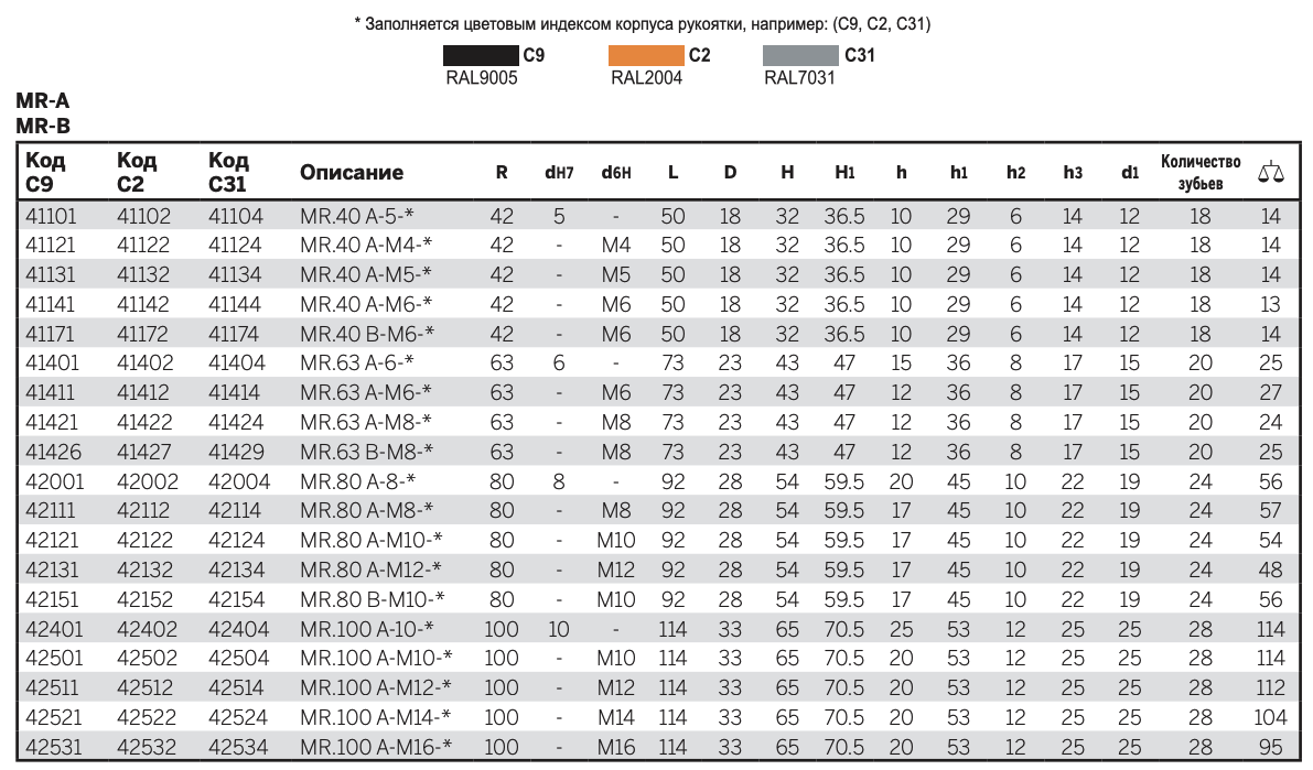 MR-A: втулка из воронёной стали с глухим отверстием с резьбой либо без резьбы. Фиксирующий винт из воронёной стали, возвратная пружина из нержавеющей стали AISI 302.