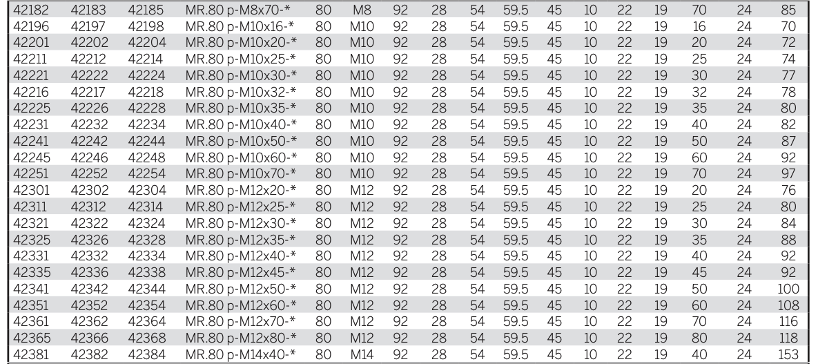 MR-p: резьбовой стержень из воронёной стали с фаской на торце, стандарт UNI 947: ISO 4753 (см. Технические данные). Фиксирующий винт из воронёной стали, возвратная пружина из нержавеющей стали AISI 302.
