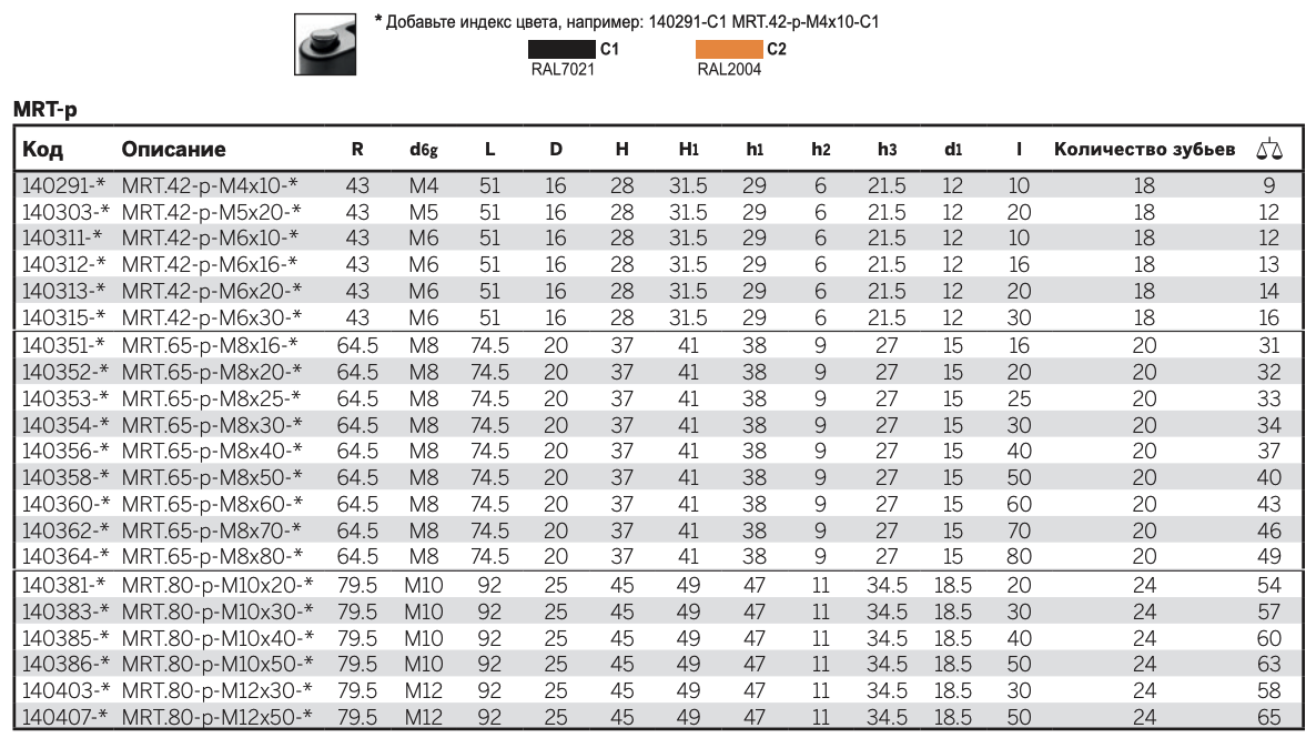Прижимной элемент из технополимера, армированный стекловолокном с удерживающим штифтом, чёрного цвета, с насечкой на выступающей части, облегчающей закручивание. Возвратная пружина из нержавеющей стали AISI 302.