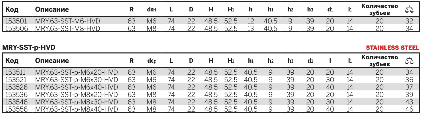 MRY-SST-HVD: Втулка из нержавеющей стали AISI 316 с глухим резьбовым отверстием.